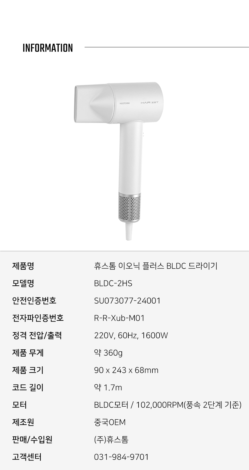 휴스톰 이오닉 플러스 헤어제트